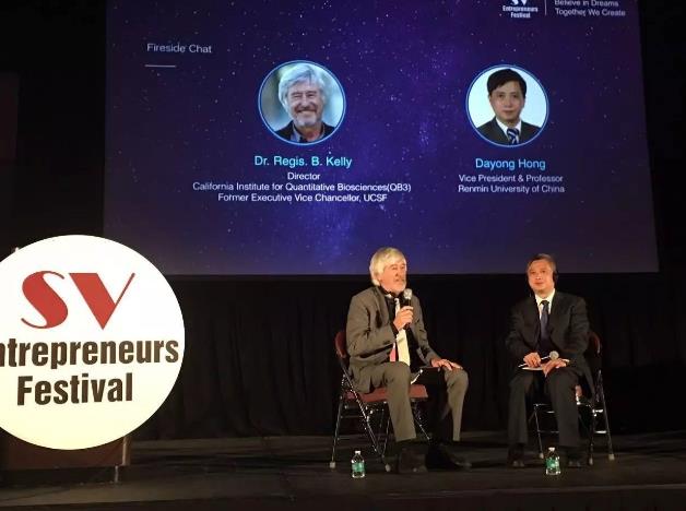 在接下來主題為“中美創(chuàng)新創(chuàng)業(yè)教育的對比及啟示”的爐邊對話環(huán)節(jié),加利福尼亞定量生物醫(yī)藥研究所總監(jiān)、加利福尼亞大學(xué)舊金山分校前常務(wù)副校長Dr.Regis.B.Kelly和中國人民大學(xué)副校長兼教授洪大用兩位重量級嘉賓對中美教育領(lǐng)域中創(chuàng)新與創(chuàng)業(yè)的差異進行了深度探討,并分享了未來兩國創(chuàng)新創(chuàng)業(yè)教育的思路和方向,給予大家無限啟發(fā)和深刻思考。